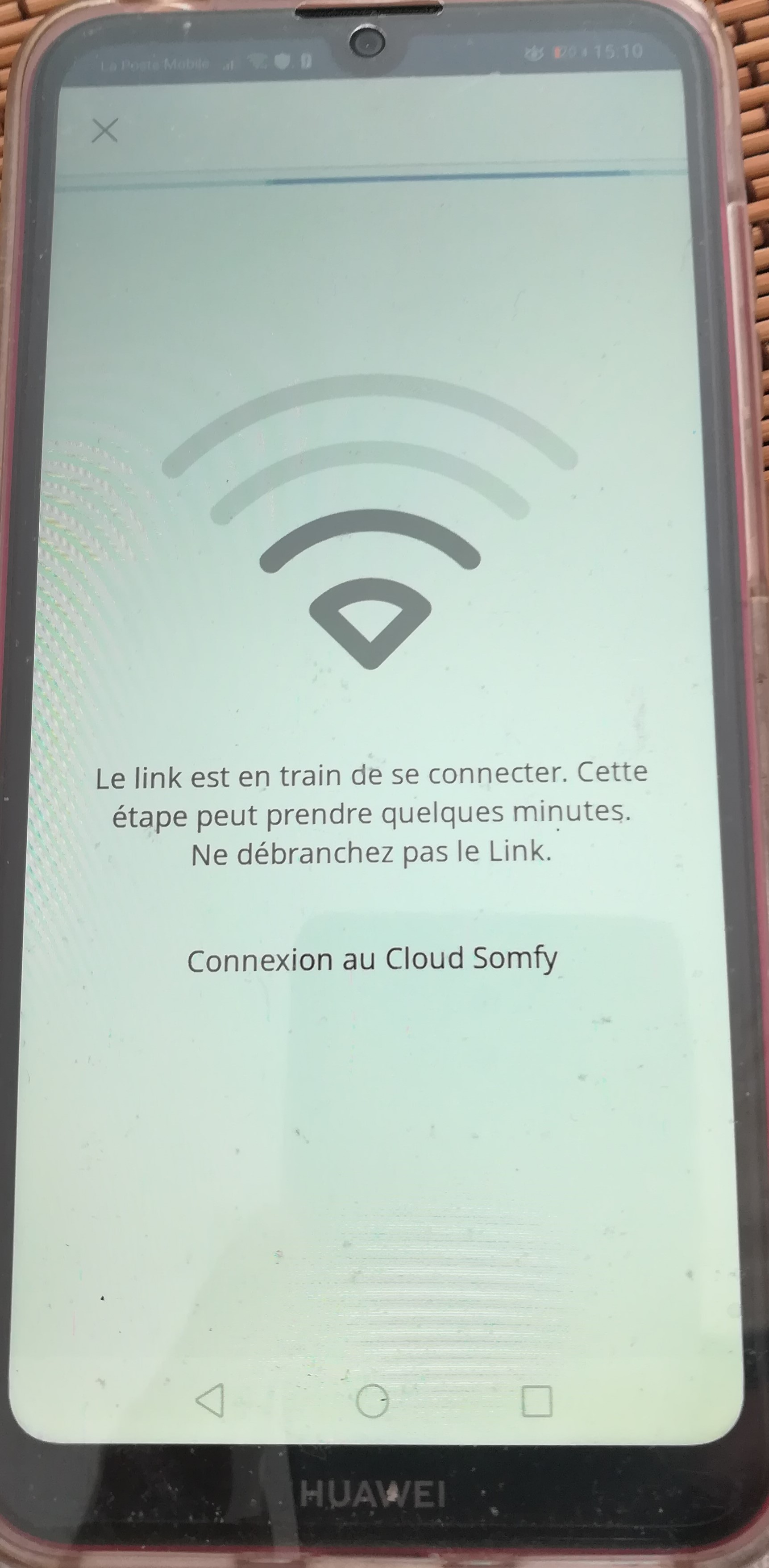 bonjour thomas, donc je suis bloqué toujours au même point voir PJ. je viens de tester mon installation de link avec deux téléphone nouveaux et différent des miens un samsung et un huawei et je suis bloqué au même endroit connexion au cloud et ensuite échec de la connexion. (Voir PJ)