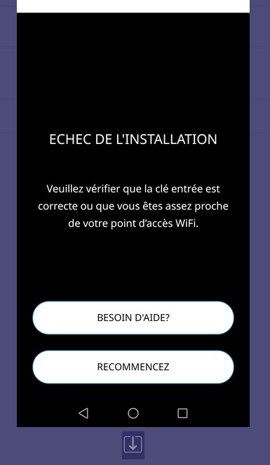 En revanche comme sur mon mail précédent mon réseau wifi s'affiche contrairement à ce que vous indiquez il s'agit du réseau free974 et le systeme homealarm b8bd8b s'affiche également en selectionnant cette étape il affiche toujours le meme message : "echec de l'installation".