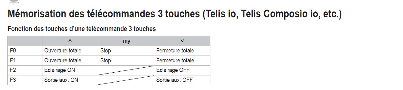 Pour les télécommandes 3 touches IO voir la notice de votre motorisation.