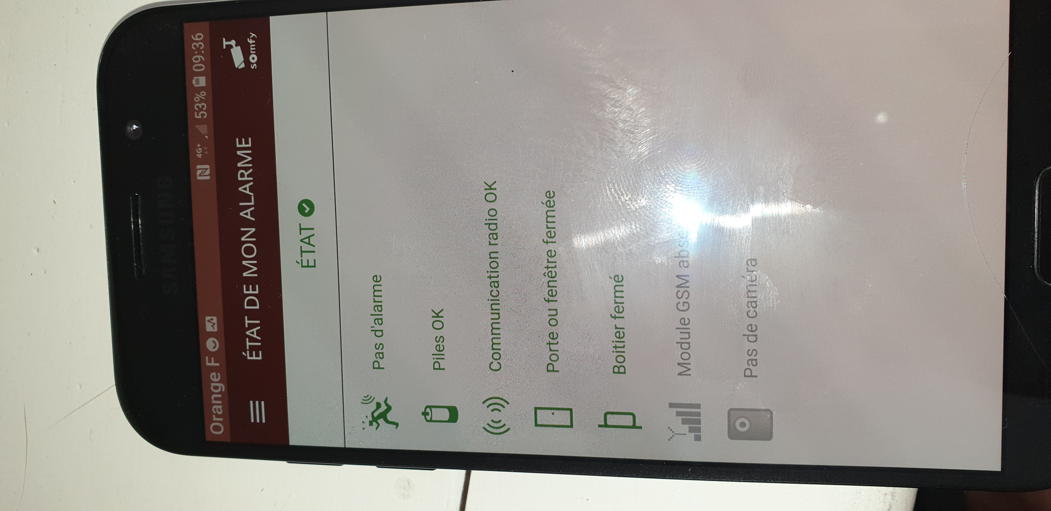 Voilà, quand je quitte mon domicile je ne visualise plus la caméra sur mon smartphone, je vous met en pièce jointe la photo du problème...gsm absent