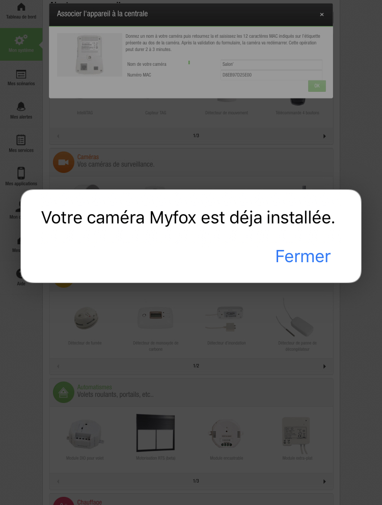 En effet, suite au respect de la procédure d’installation, un message d’erreur me signale que ma caméra a déjà été installée.