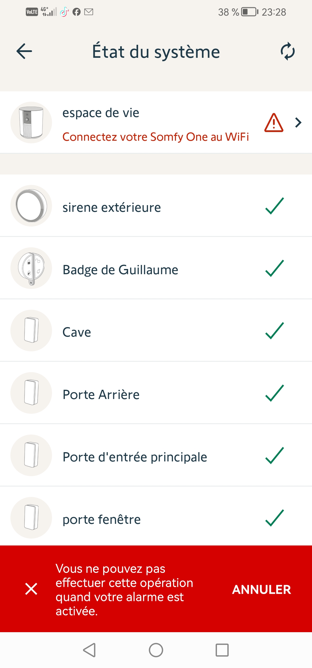 Bonjour impossible de connecter alarme. On me demande cependant de réinstaller la one +. Ce qui est impossible tant que l'alarme n'est pas désarmée.