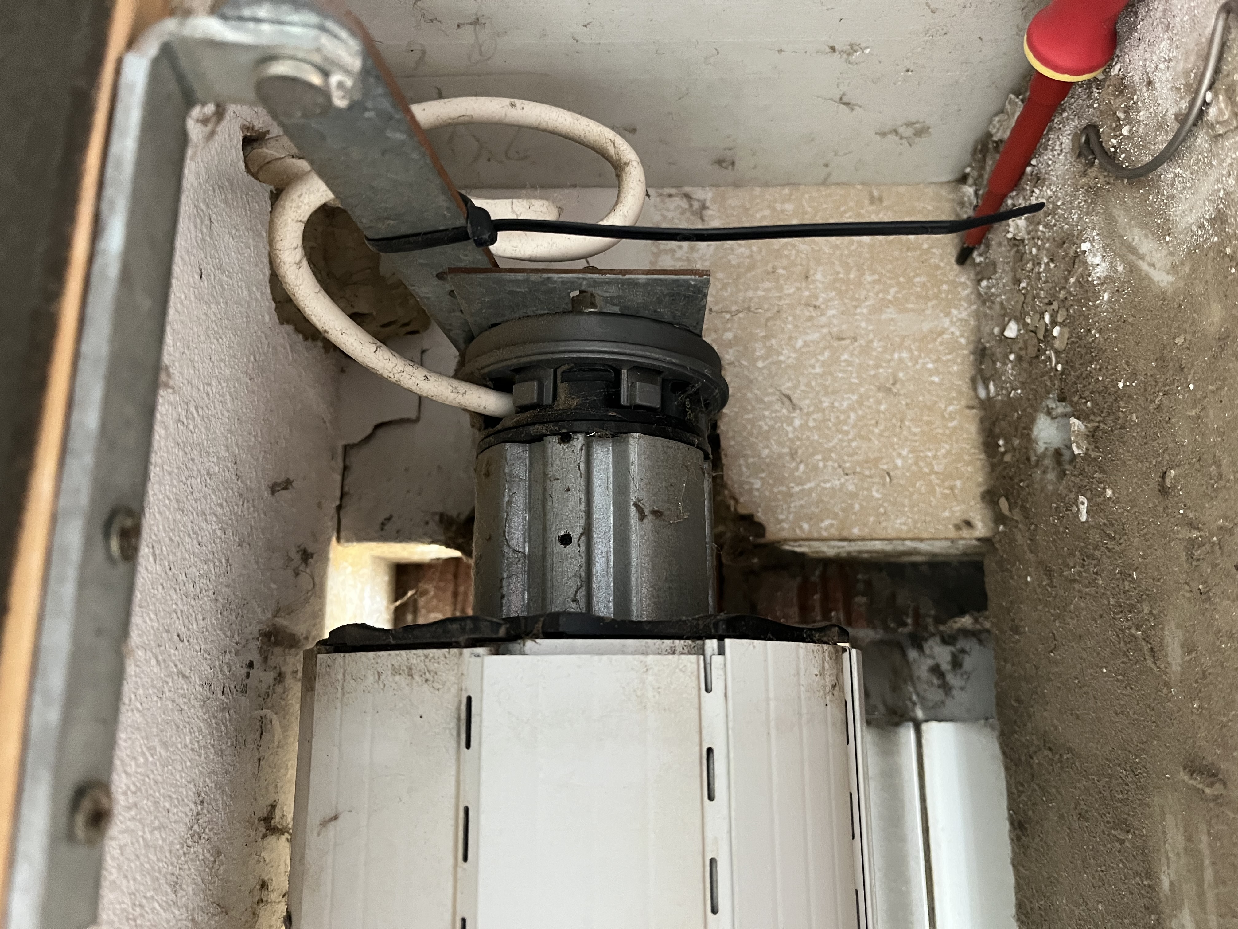 Après avoir appelé l’assistance, il m’a été confirmé qu’il faut bien démonter le volet roulant afin de faire une double coupure électrique sous forme 3/9/3/9 : débrancher l’alimentation 3 secondes, remettre sous tension 9 secondes et répéter l’opération. Ensuite reprogrammer la télécommande. Mon problème est maintenant celui-ci : comment accéder aux fils d’alimentation ? Quelqu’un peut-il m’aider en appuyant sur la photo ?