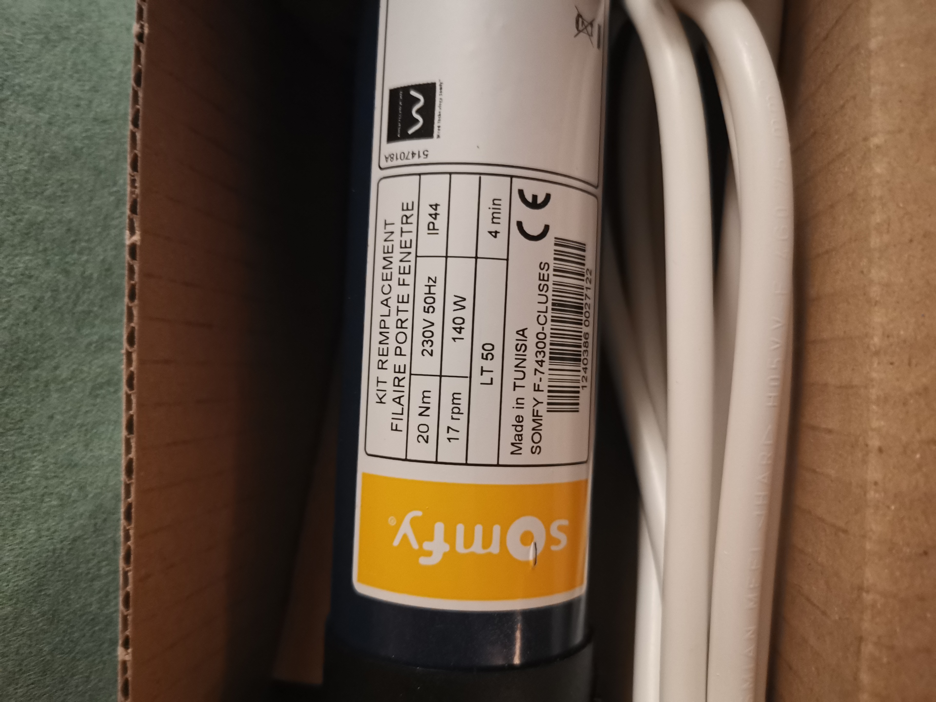 Jai fais l'achat d'un kit de remplacement moteur pour volet roulant Somfy LT50