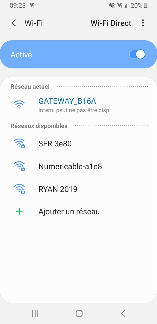 Sur la page de sélection reseau gateway s'affiche mais la connexion à internet n'est pas faite