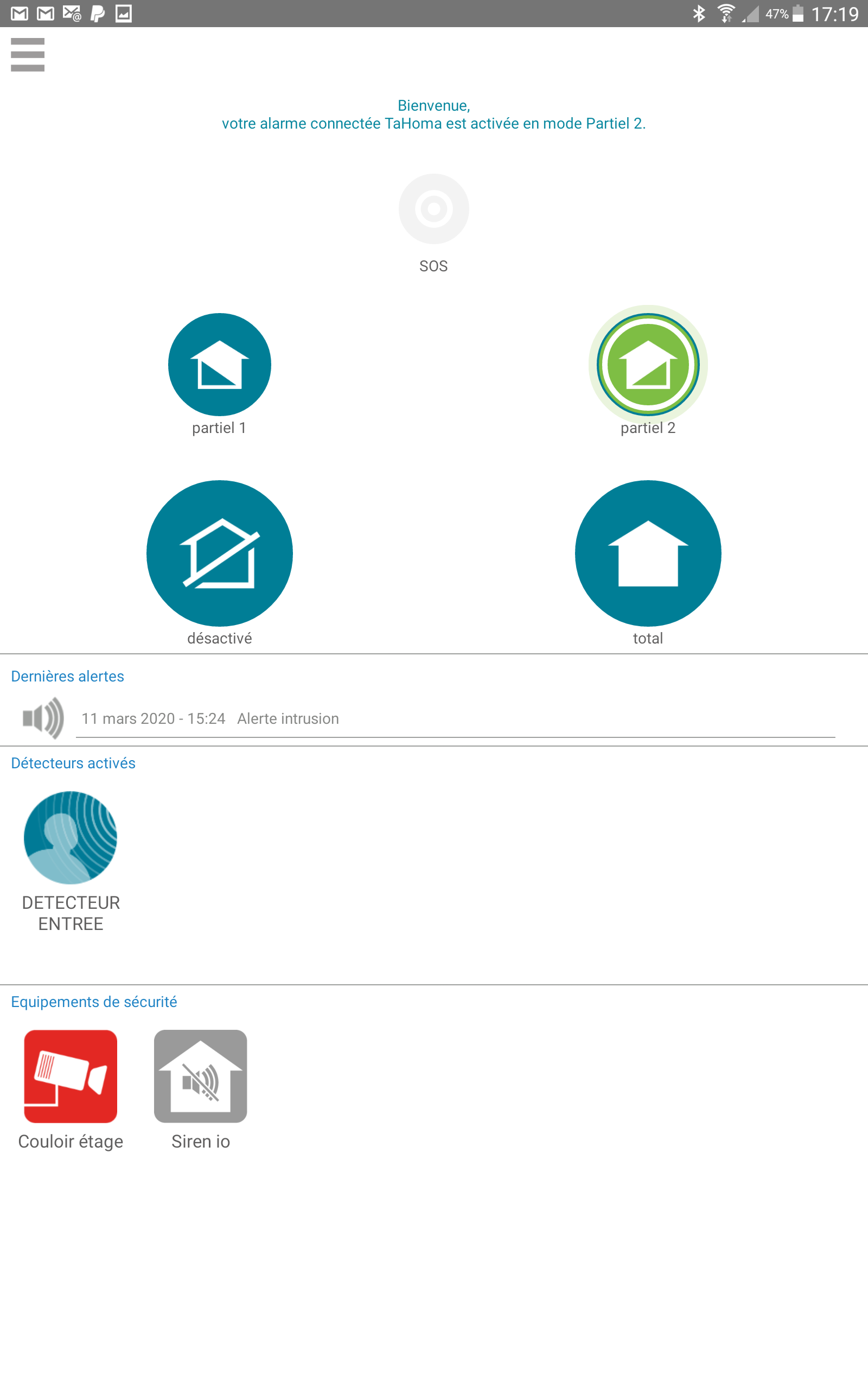 Lors de vos tests avez-vous bien activé le mode de surveillance Parteil 2 de votre système de sécurité ?