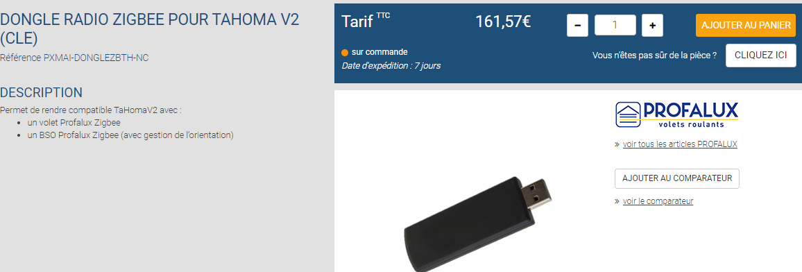 Normalement la clé Enocean fait partie des compatibilités. Mais je crois savoir qu'il y a quelques soucis en ce moment avec les produits Profalux.