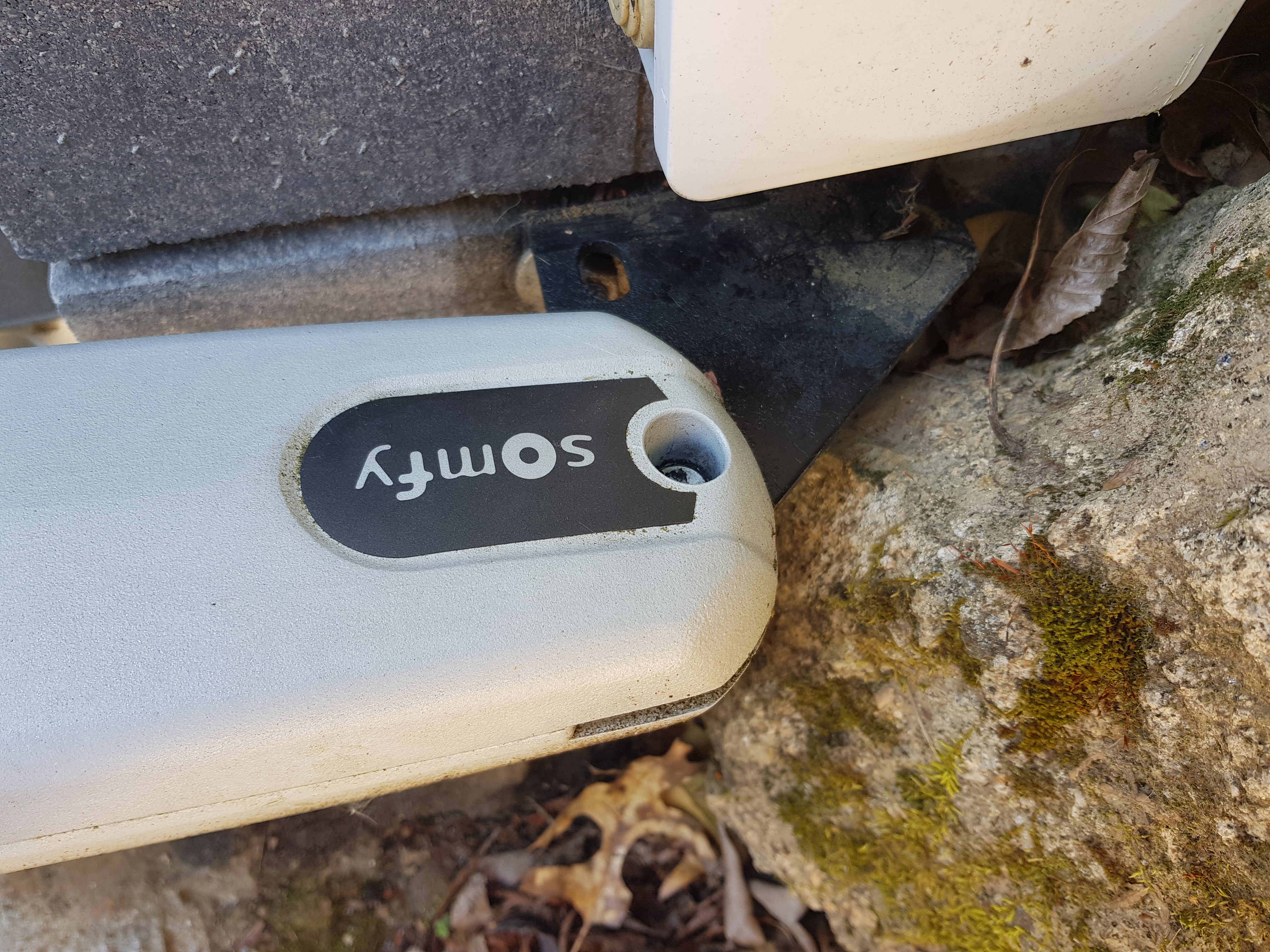 je me suis lancé dans le démontage des moteurs et se faisant j'ai constaté que les équerres fixées sur les porte avait du jeux; Je les ai démontées, nettoyées car elles étaient collées avec un pâte noire. Je les ai repositionnées en jouant sur les lumières de positionnement ce qui m'a permis d'obtenir une fermeture parfaite des deux battants. J'ai ensuite ajouté pour chaque équerre une vis de maintien en utilisant un des trous , cette fois rond, pour éviter un déplacement de l'équerre. j'en ai profité pour tout graisser.