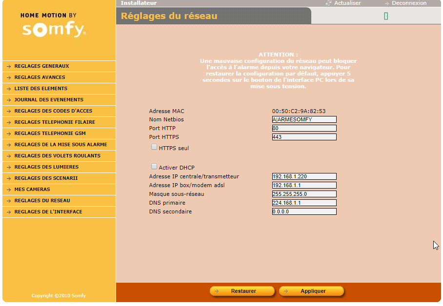 Pouvez-vous poster une copie d’écran à partir de la console web du transmetteur en mode installateur, du « Réglage réseau » et du « Réglage de l’interface ».