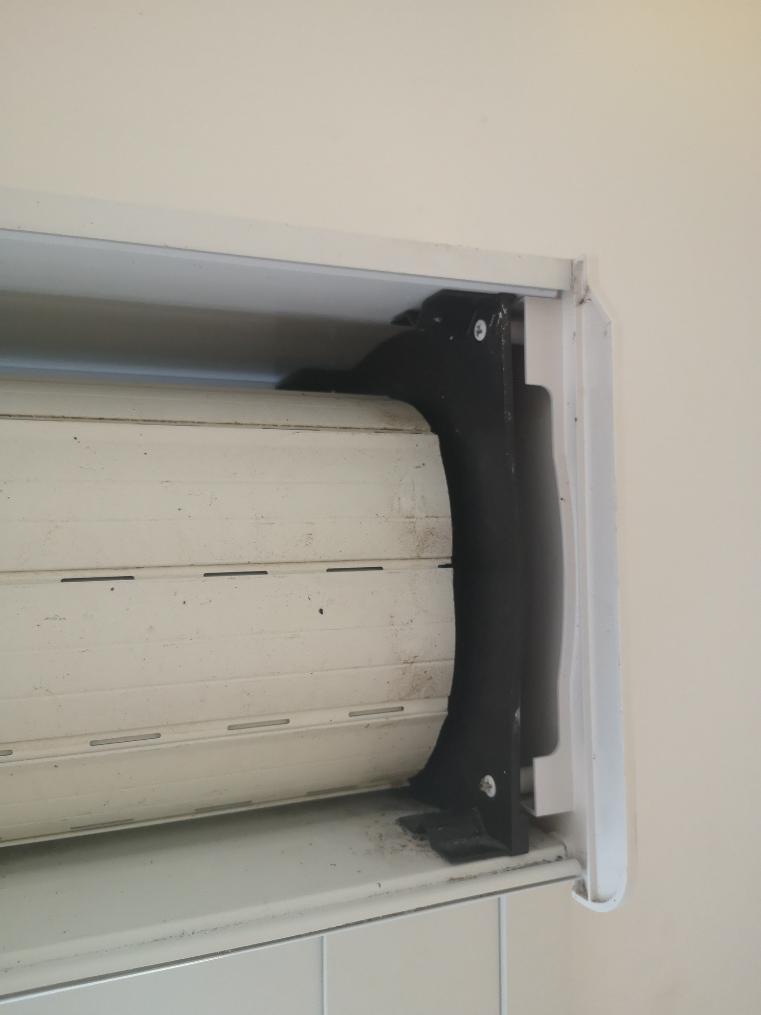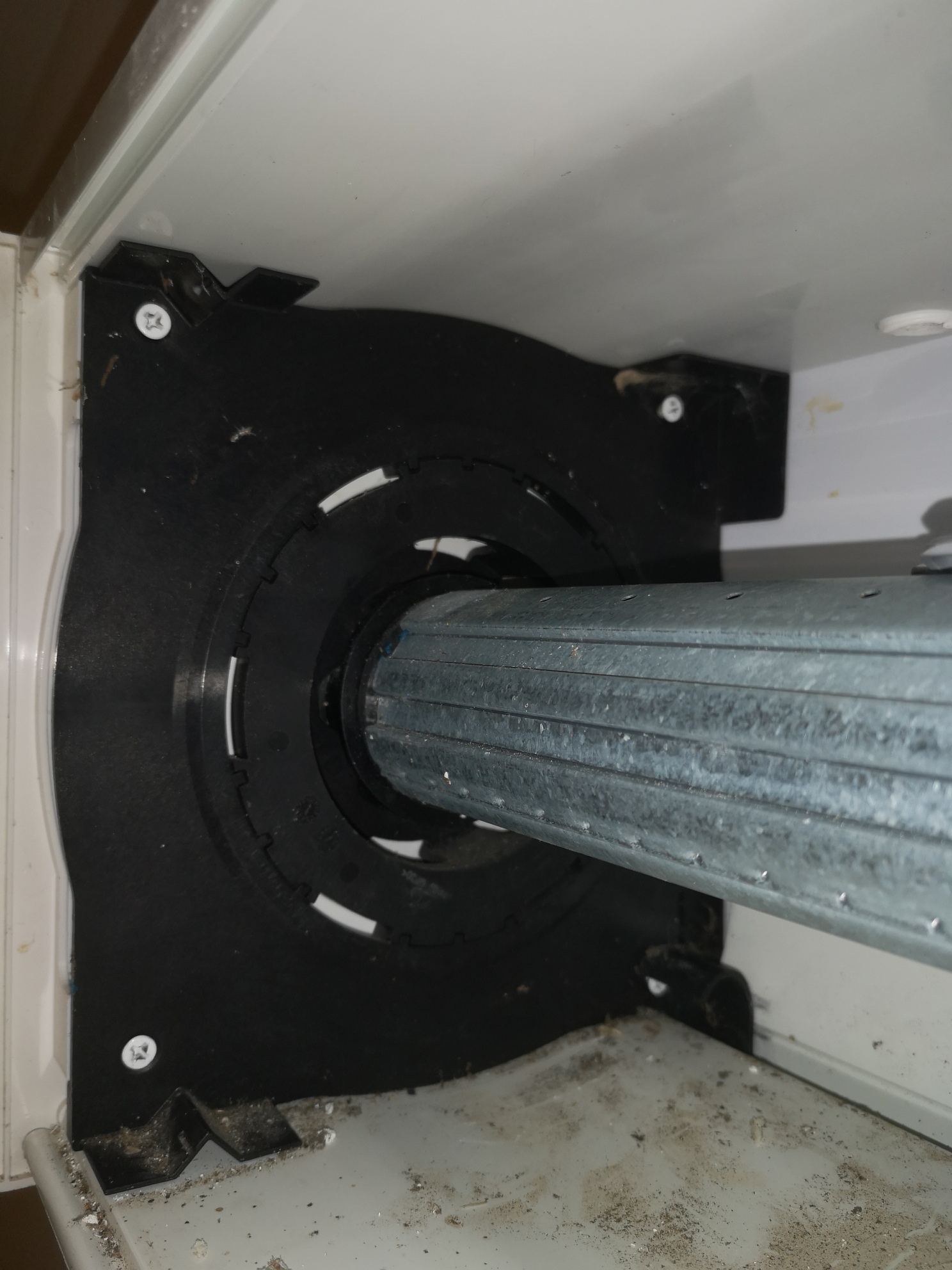 Le problème est que l'axe est indémontable car, du fait de l'encastrement du coffre dans le placo, on ne peux pas extraire les support de l'axe qui sont fixés sur les joues du coffre avec 4 vis d'entraxe 15 cm (disposées en carré)