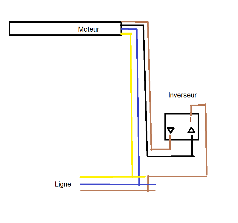 L'inversion doit se faire entre le fil marron et le noir et la phase