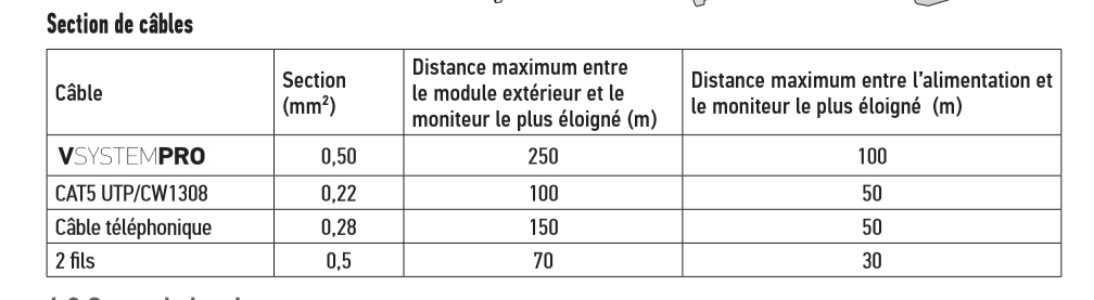 Que devons nous prévoir comme câblage,gaine.. pour l’installation d’un visiophone VSYSTEMPRO?