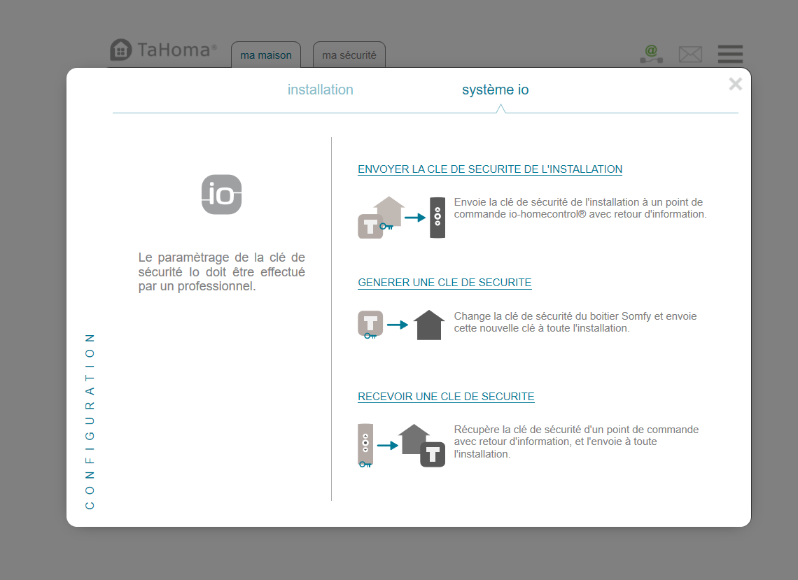 Sauf que à aucun moment dans "Systéme IO" on me propose de clé de sécurité