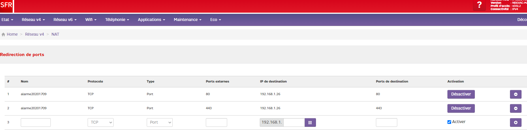 Suite à un changement de Box ADSL, je n'arrive plus à me connecter à mon interface PC de mon alarme.