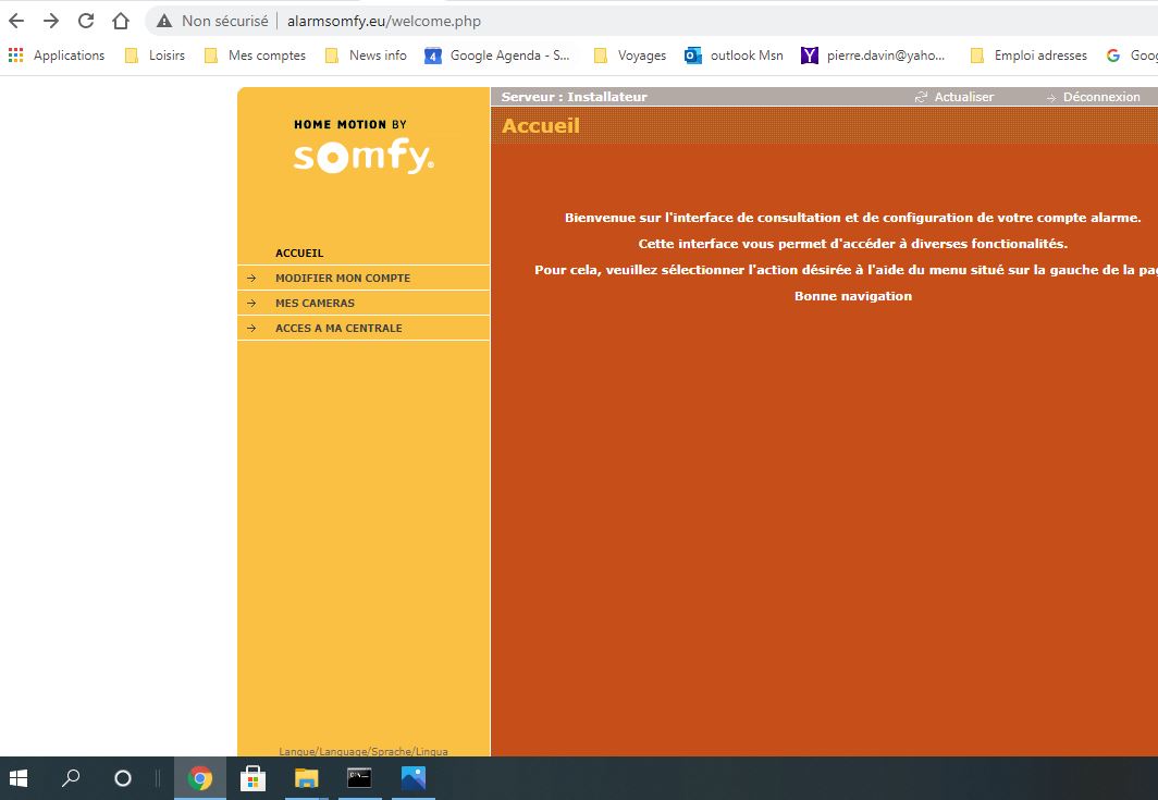 ca marche en web et impossible en acces telephone et ou http://www.alarmsomfy.eu/welcome.php (connexion au site et plante lorsqu'on clique dans acces à ma centrale