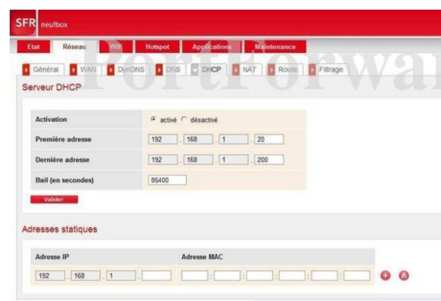 Dans le "Réglage réseau", il faut décocher la case "Activer DHCP".