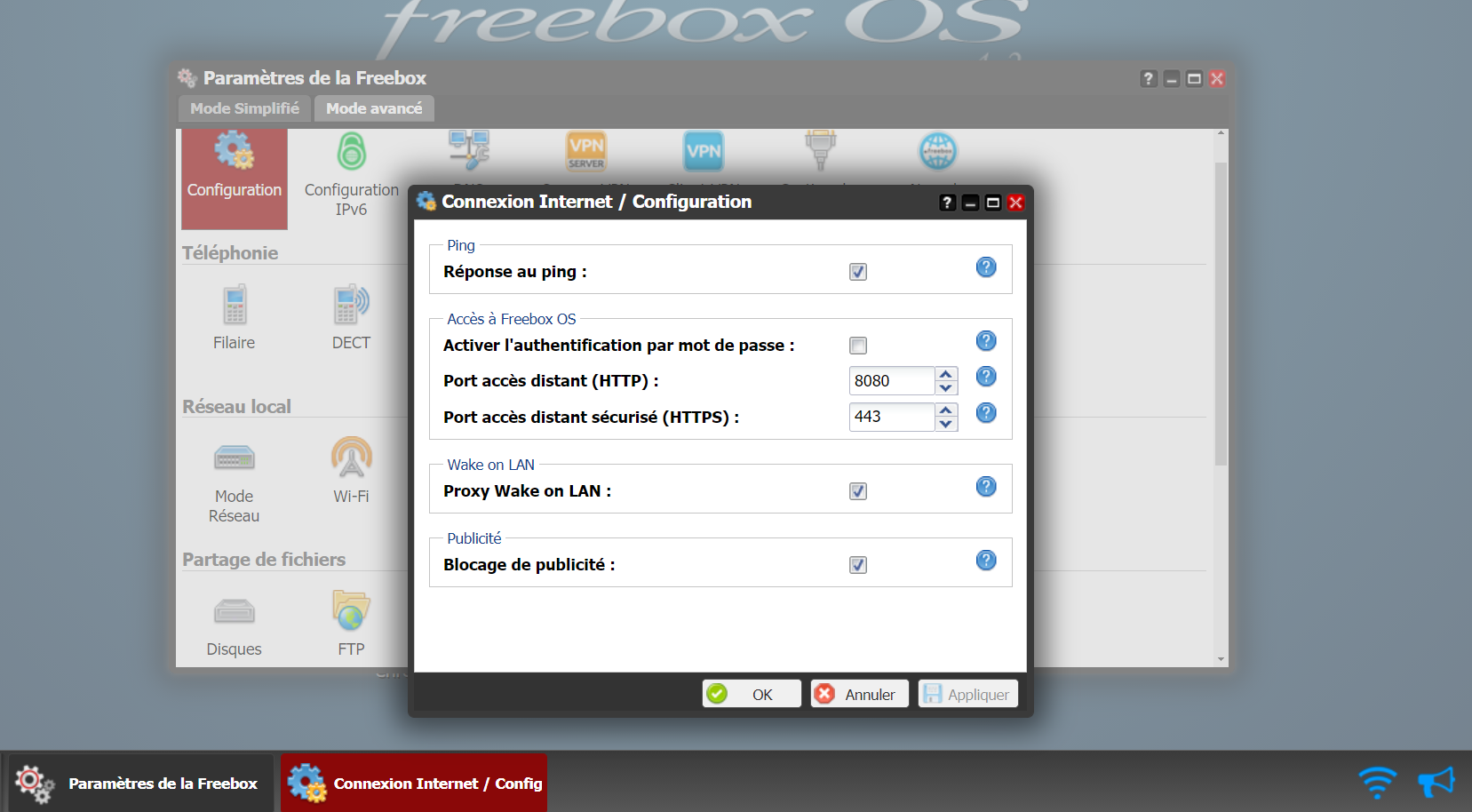 voici les copie d ecran que vous me demandez et la BOX est une Freebox revolution V6