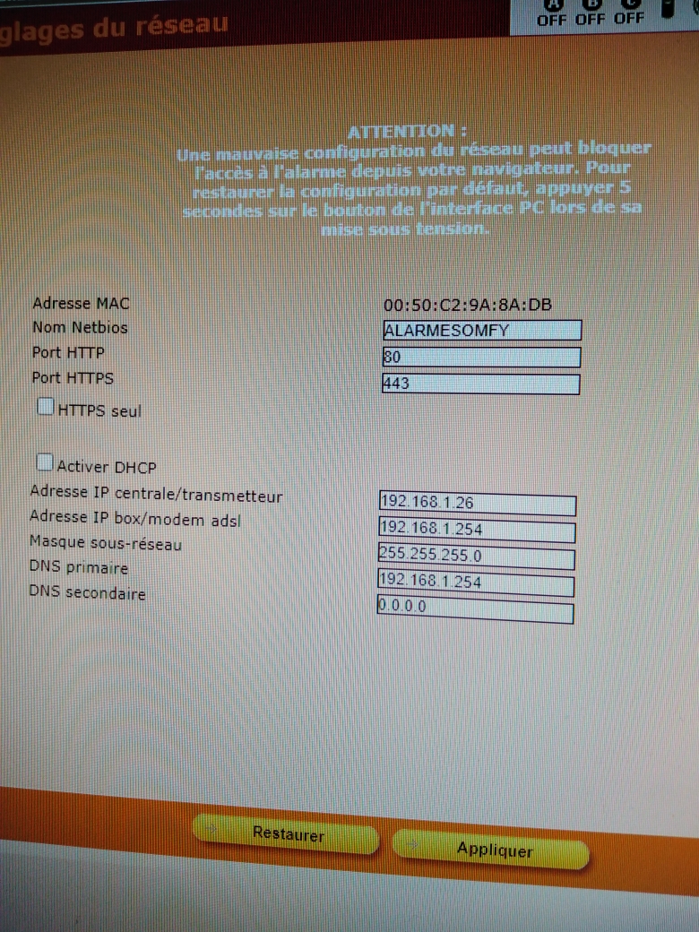Comme vous avez changé de box, avez-vous suivi ces instructions ? https://forum.somfy.fr/questions/560538-suite-changement-box-adsl-arrive-connecter-interface-pc-alarme