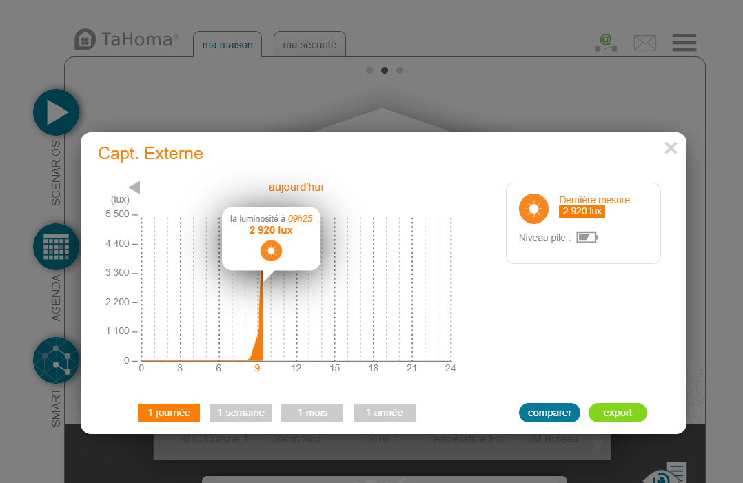 Login > Smart > Ma programmation crépusculaire > capteur solaire