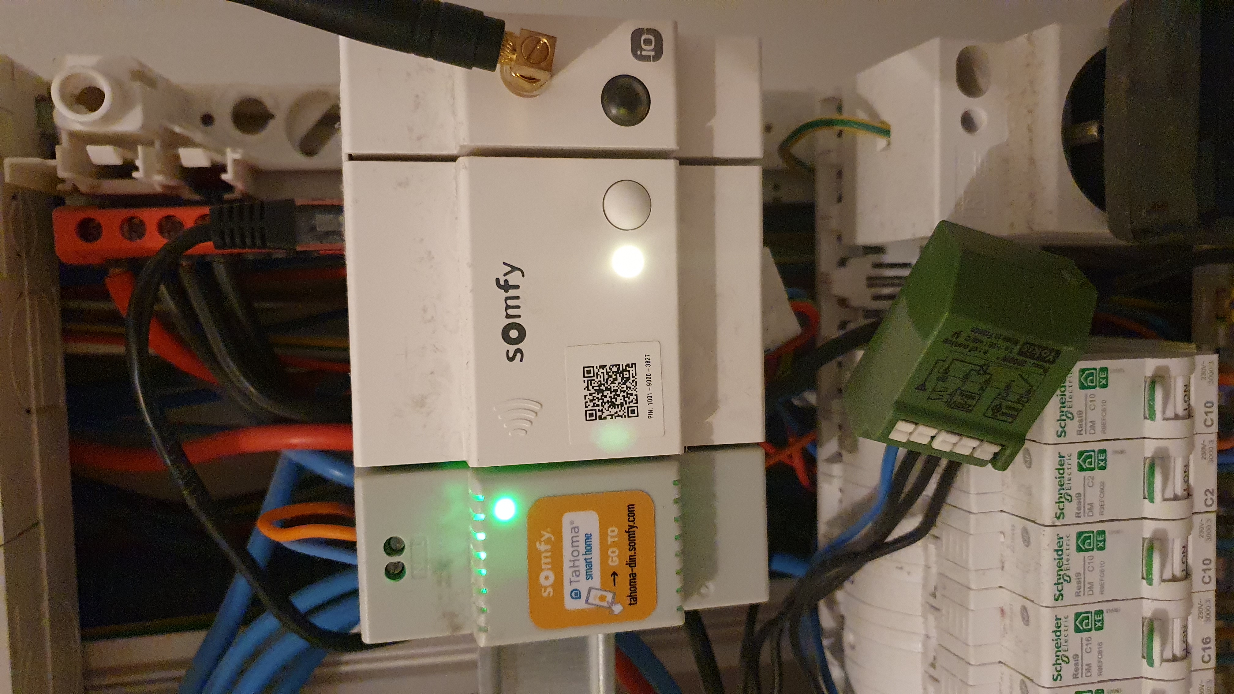 Voilà maintenant plus d'un an que j'ai aménagé dans mon appartement (tout neuf) et j'ai donc eu la chance de me faire équipé directement par le promoteur d'une box (ou boîtier ?) Somfy tahoma qui est inclue directement dans mon tableau électrique.