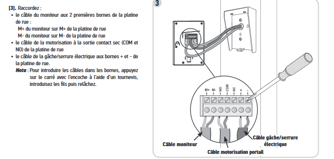 Un grand merci pour votre aide, il y’a bien un accessoire de brancher (digicode). Les câblages provenant de la maison n’étant pas assez gros (fils téléphone) nous allons devoir retirer du câble.