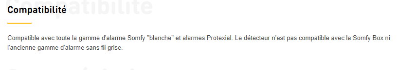 En effet je dispose bien de l’alarme somfy grise. C’est dommage du coup car le détecteur est reconnu par l’alarme, j’arrive à le voir sur mon interface utilisateur, à le mettre en pause mais il ne peut pas se piloter avec l’alarme ?