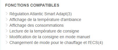 Maintenant dans ce lien il est indiqué les fonctions supportées (copie ci jointe) et je ne trouve pas d'autres informations.
