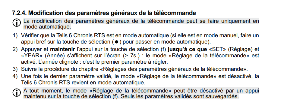 remise à l'heure de ma télécommande Télis 6 Chronis RTS ?