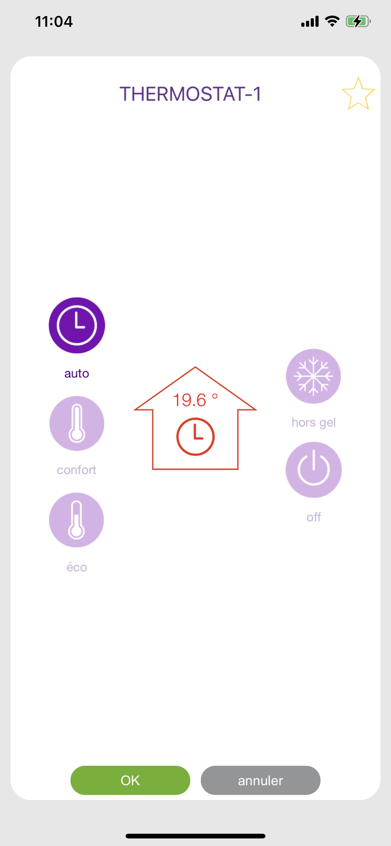 J'ai bien le contrôle sur le Programmateur global et je peux le basculer AUTO, ECO, CONFORT, HORS GEL