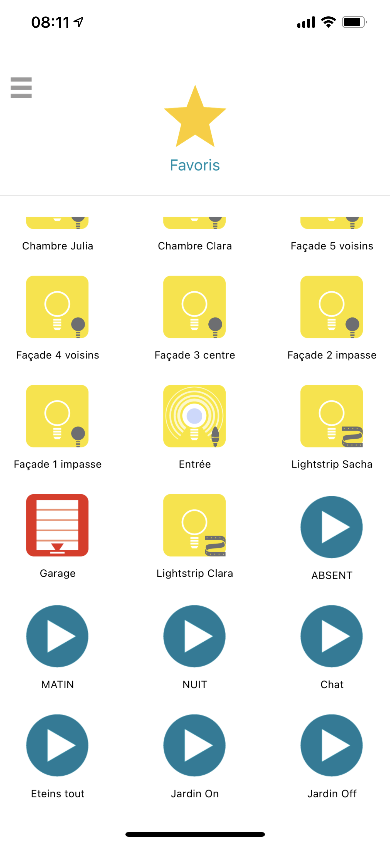 Sur mon application ios, je prefere mettre en page d'accueil la page favoris car elle me permet d'y faire figurer des scenarios de lancement, ce qui n'est pas possible sur la page maison.