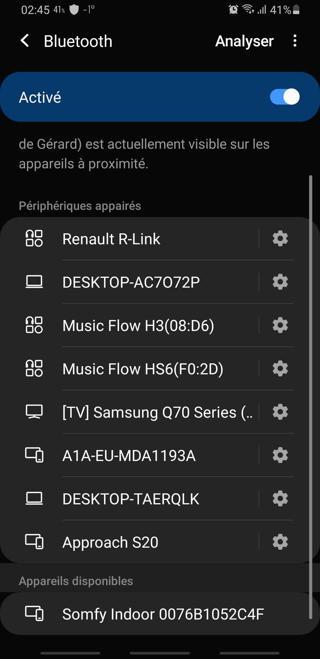 Ecran bluetooth qui liste périphériques appairés et appareils disponibles dont ma caméra.Si je clique sur celle-ci un message" application requise pour utiliser cet appareil" apparaît..(Normal...)