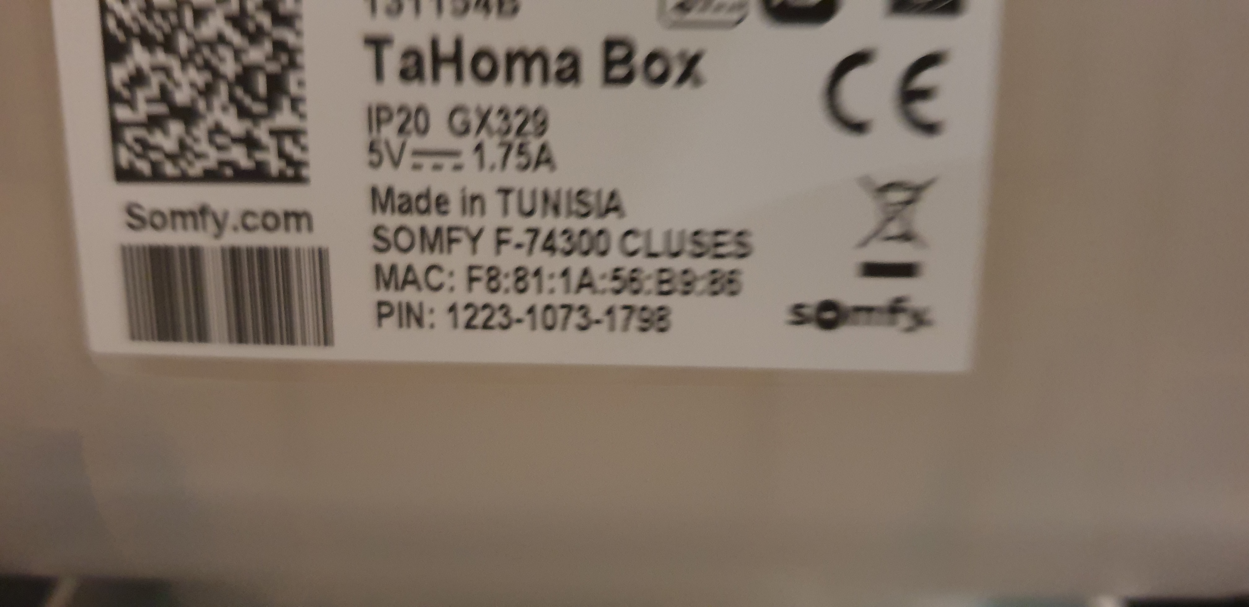 Pouvez vous me communiquer le code pin de votre Tahoma.