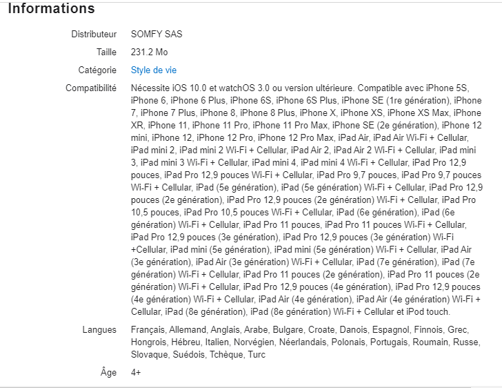 Si votre matériel en fait partie c'est qu'il y a une erreur de déclaration de la part de Somfy sur le site d'Apple.