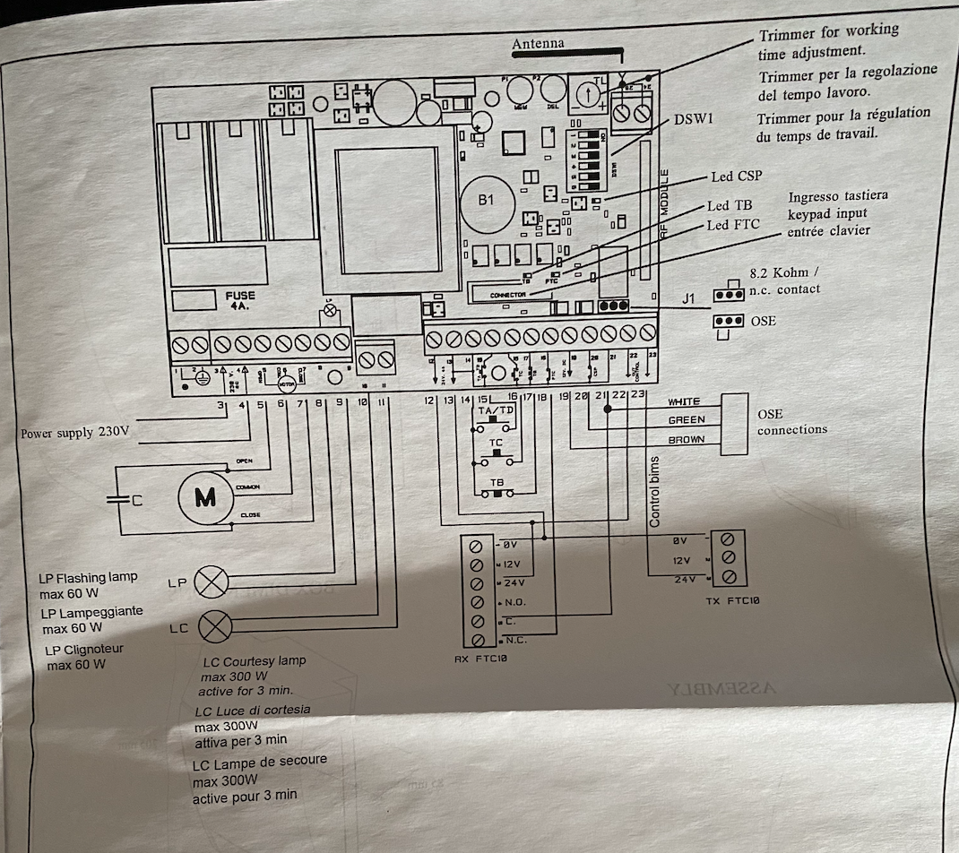 Il vous appartient de vérifier mes propos qui ne peuvent être garantis, pour celà, via un testeur contrôlez la tension en 12/13. Via une boucle en fil rigide faites un bref shunt <0.5s sur 14/16, la porte doit réagir.