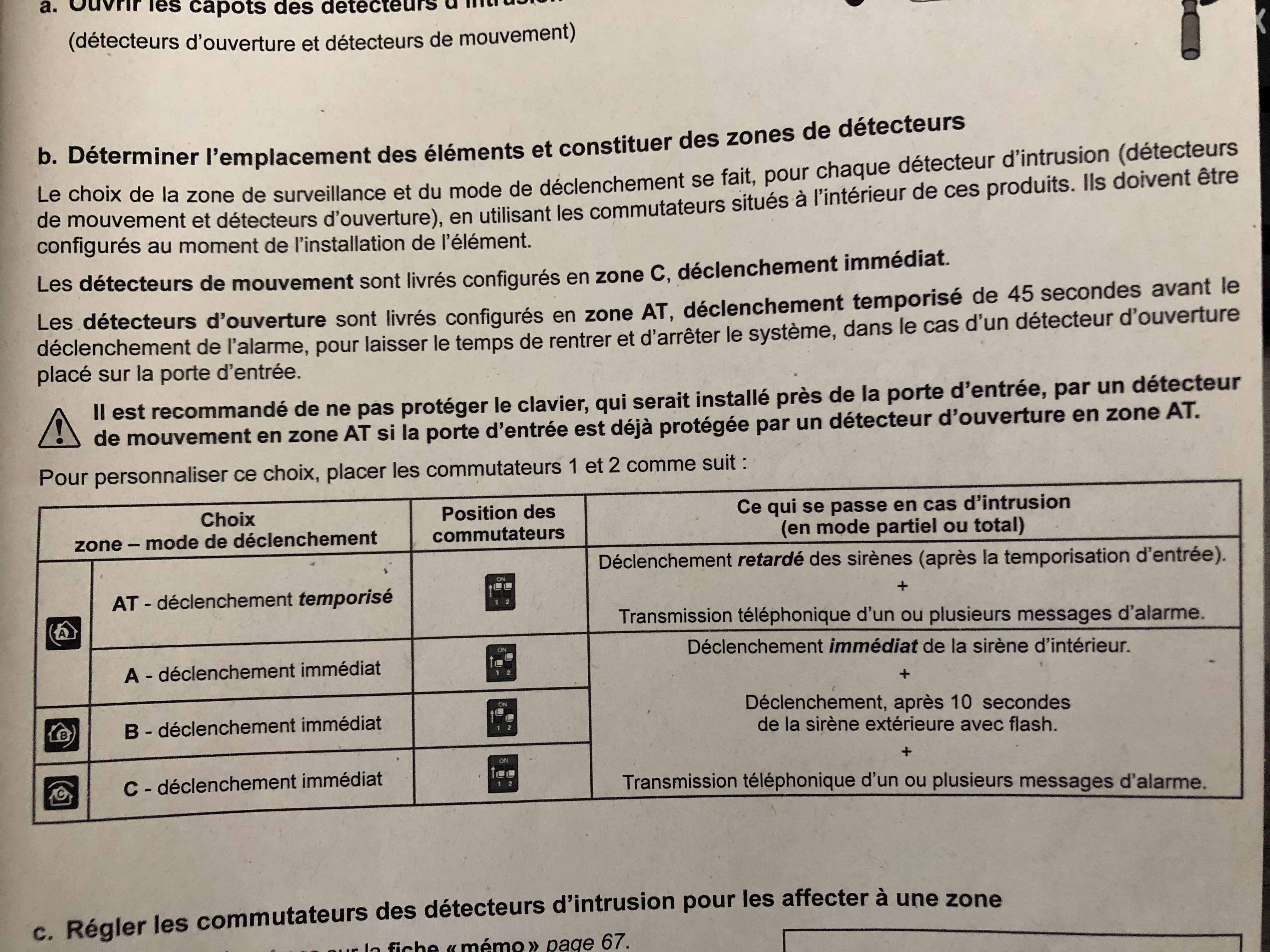 une zone AT a un déclenchement temporisé. Ce qui veut dire que l’alarme doit se déclencher à un moment.