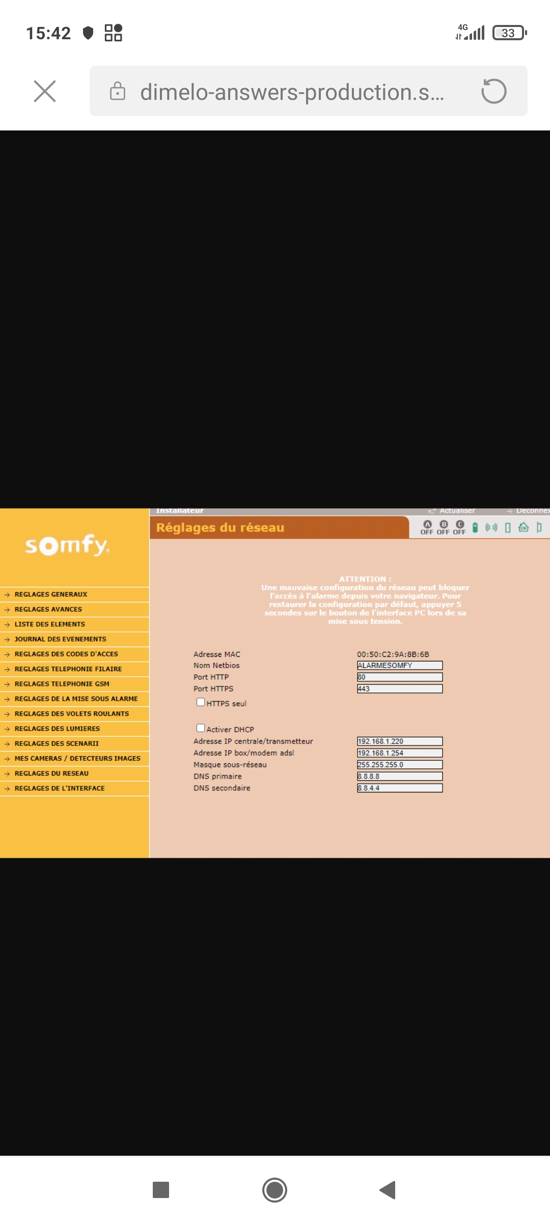 J ai un probleme de connexion avec l application alarme somfy j arrive a me connecter en wifi mais impossible en 4g .