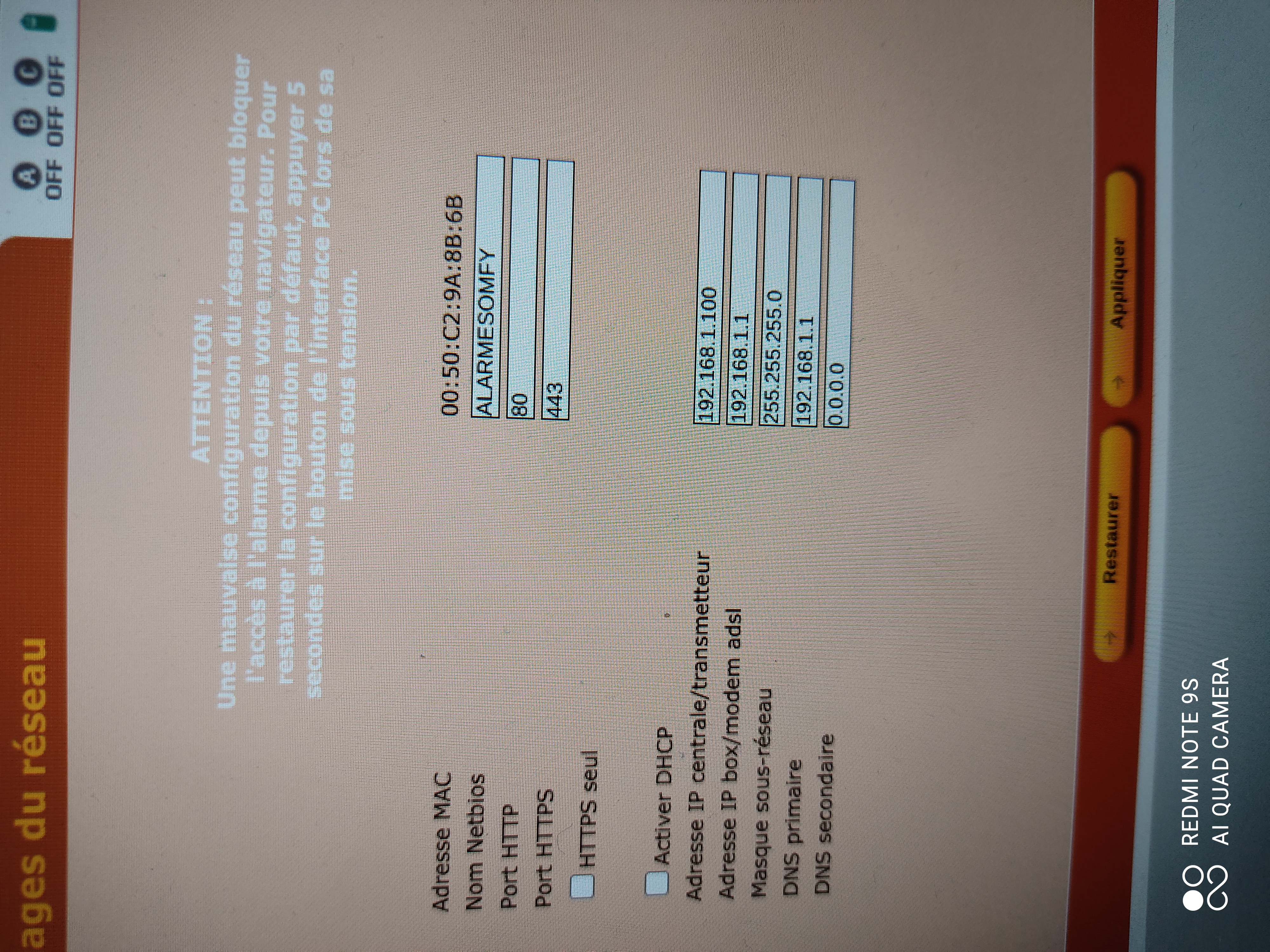 On va essayer de rebasculer le système d'alarme dans la plage DHCP de la box internet et voir si ça corrige votre problème. Pourriez-vous dans un premier temps supprimer l'ouverture des ports 80 et 443 que vous avez effectué.