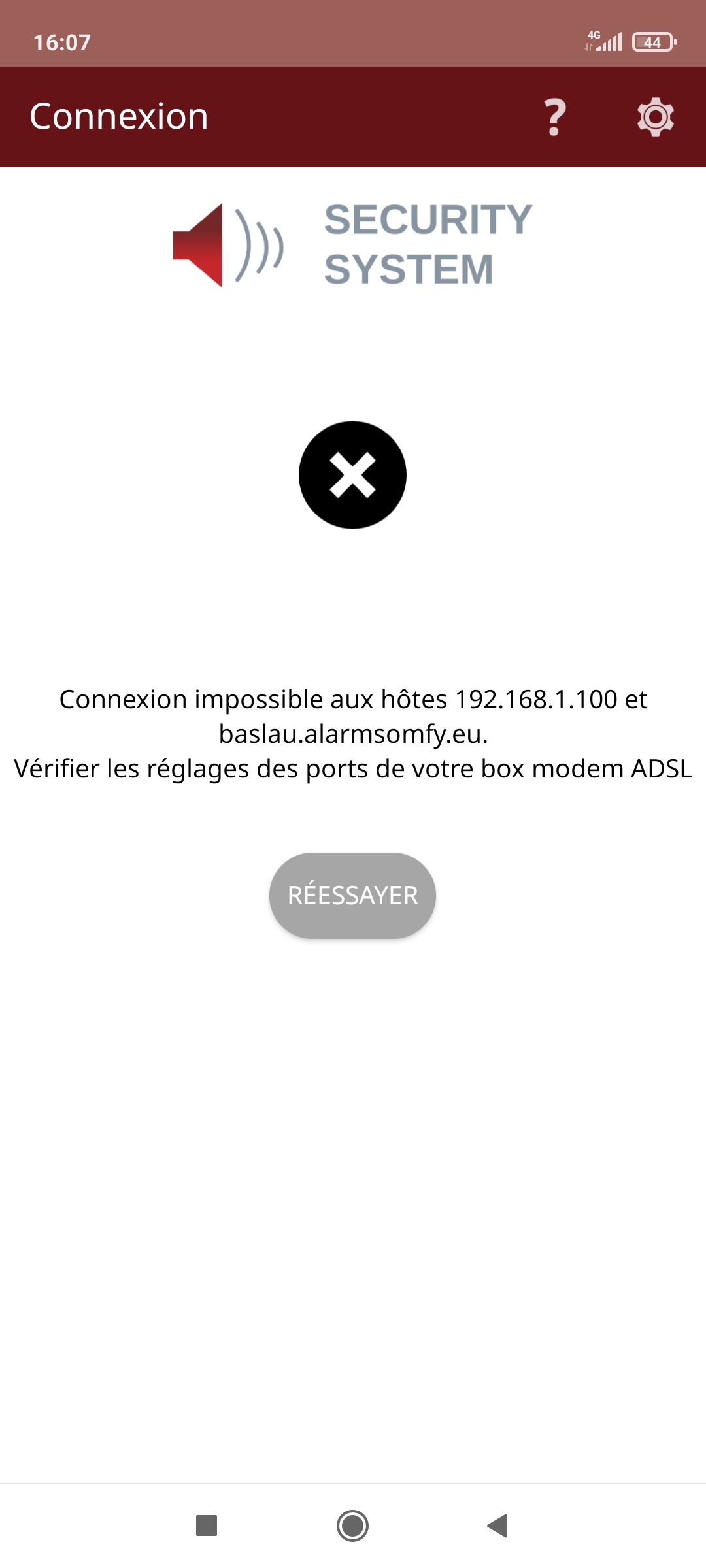 J ai un probleme de connexion avec l application alarme somfy j arrive a me connecter en wifi mais impossible en 4g .