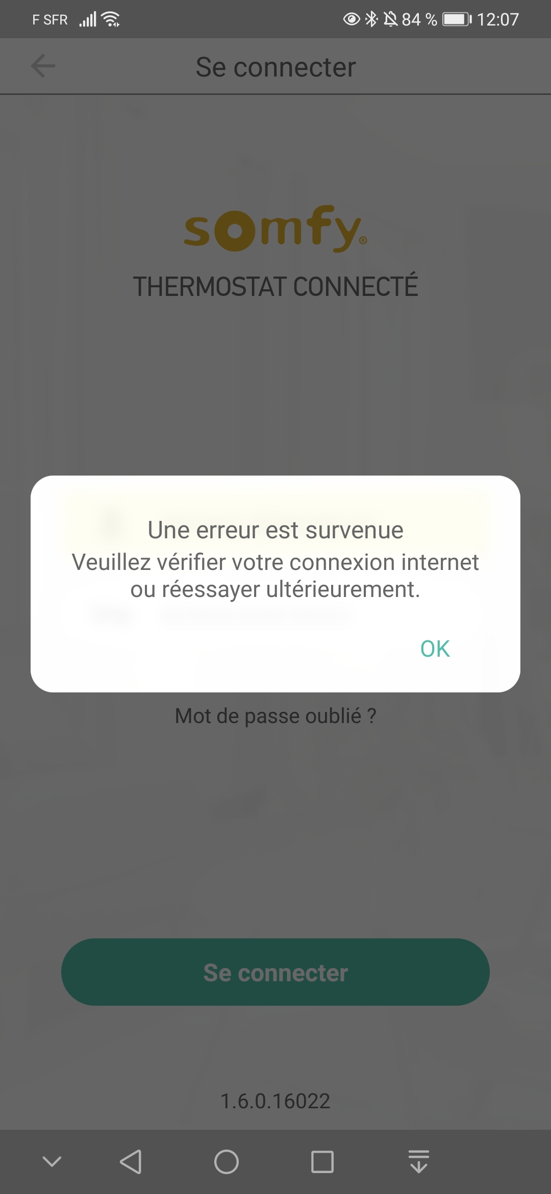 Edit, j'ai donc 2 compte somfy, l'un refuse de se connecter suite à un problème réseau... ( techniquement impossible). Et avec l'autre, je peux me connecter mais impossible de faire le reset de mon thermostat.