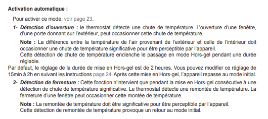 Oui le Thermostat V2 détecte bien les ouvertures de fenêtre, mais il n'y a rien de spécifié sur la gestion de cette option, alors que sur l'autre gamme de thermostat, c'est bien détaillé (Voir copie écran ci jointe).
