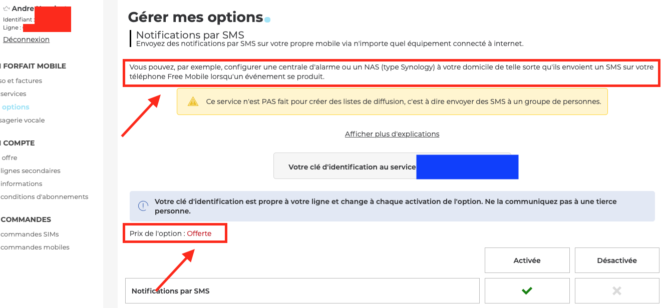 Maintenant vous pouvez essayez de vous connecter sur votre compte FREE pour activer la nouvelle option "notification par SMS"