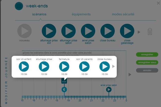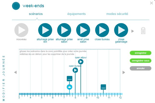 J'ai réalisé 1 installation avec 14 volets roulants et le tout piloté par une box tahoma, les volets fonctionnent très bien avec la programmation semaine mais j'ai juste 1 pb le week-end, la journée type du week-end n'est pas prise en compte, les scénarios sont toujours sur 1 journée type semaine. J'ai essayé pas mal de choses mais rien à faire, qq un peut il m'aider?