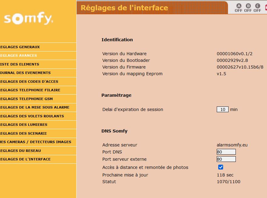 Je vais refaire la manip car je n'ai plus d'accès en local. Et je viens de voir que l'IP de la centrale a encore changée! J'ai sans doute fait une mauvaise manip.