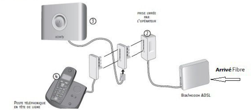 Nous ne pourrons pas vous assurer le fonctionnement de la Centrale/Transmetteur Protexiom 75 sur une ligne numérique (derrière une box internet). En effet, certain modèle de ce système d'alarme sont équipés d'une surveillance de ligne qui permet un fonctionnement uniquement sur une ligne analogique (RTC classique). Comment été raccordé votre Centrale avant la mise en place de la fibre chez vous ?