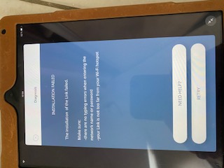 J'ai le message "This accessory joined xxxx" (photo 1), puis l'écran "The link is connecting, This could take a few minutes. Do not unplug the link" (photo 2), puis après quelques minutes l'écran "Installation Failed" (photo 3)