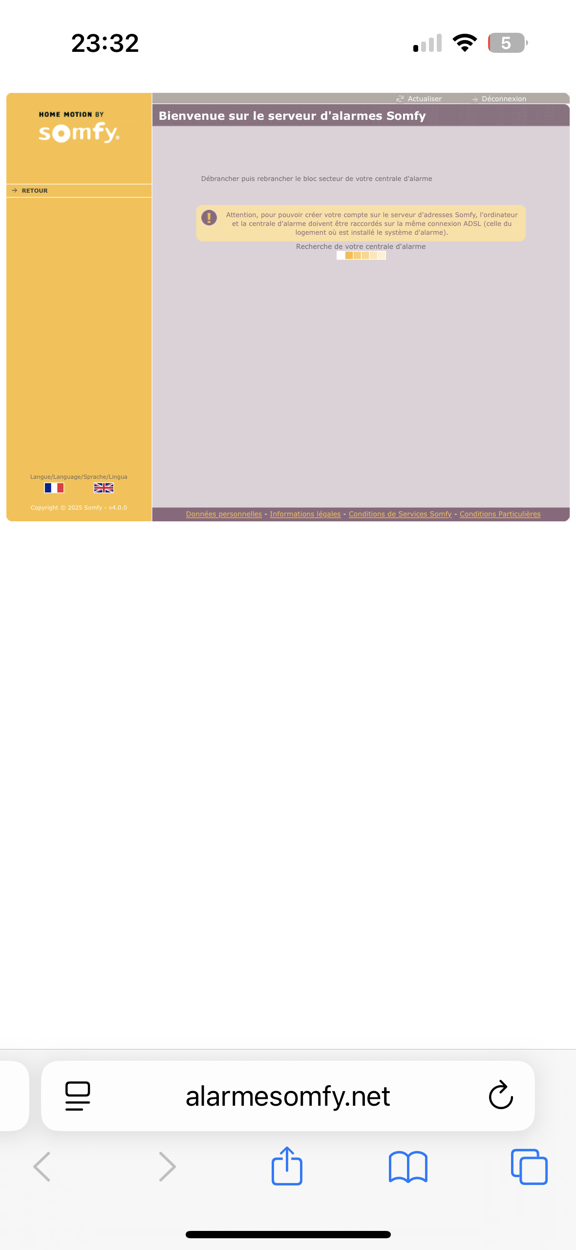 Je n arrive pas à enregistrer ma centrale sur le site alarmsomfy.eu.
