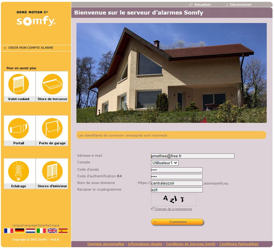 J'ai dans une autre maison une alarme SOMFY, j'ai un compte sur :
