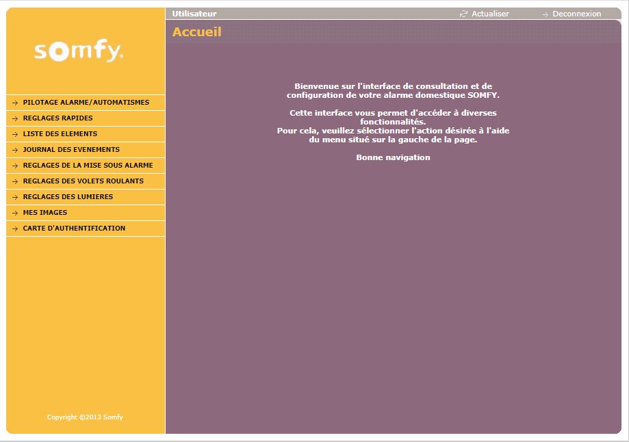 Connectez-vous en mode "utilisateur" sur : https://alarmsomfy.eu