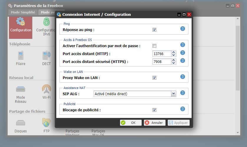 ça c'est bon, à part sur le "Réglage réseau" ou vous pouvez mettre 8.8.8.8 en DNS primaire et 8.8.4.4 en secondaire. Mais les ports étant fermés, ça ne changera rien.