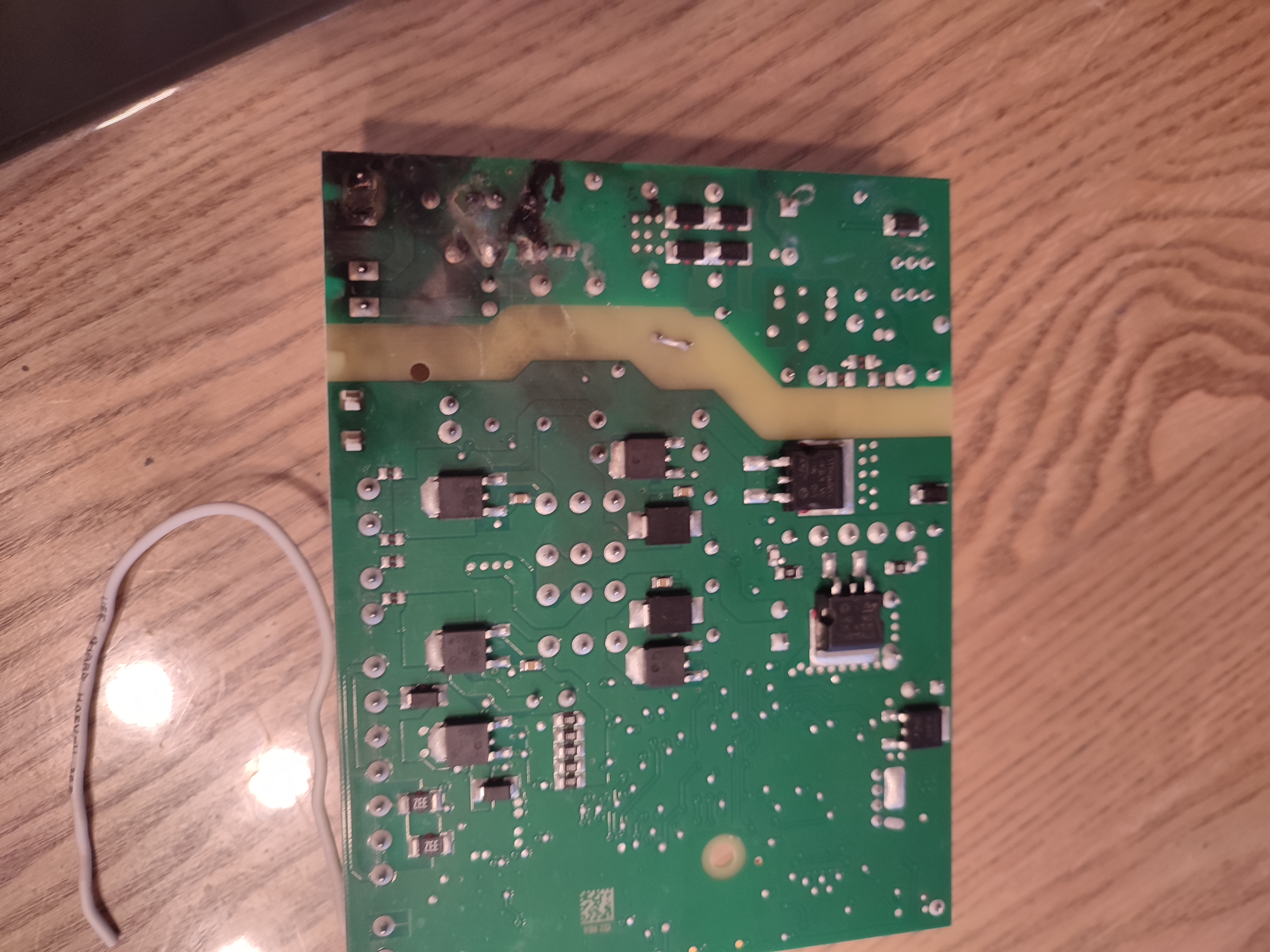 Le disjoncteur dédié avait bien sauté, plus de courant, mais la carte était en train de bruler...